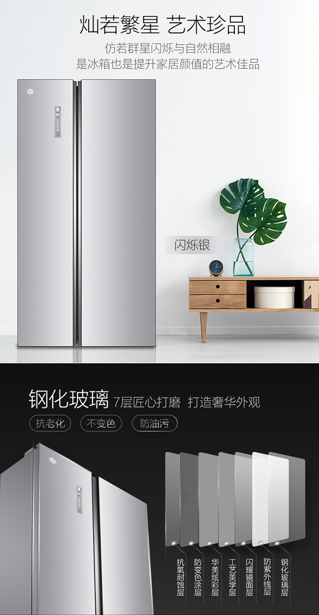 搭載-33℃深凍鎖鮮科技,肉汁飽滿更長久。采用離子長效抗菌凈味,抗菌率高達99.9%。3D沐風,風冷養鮮,無需鑿霜。